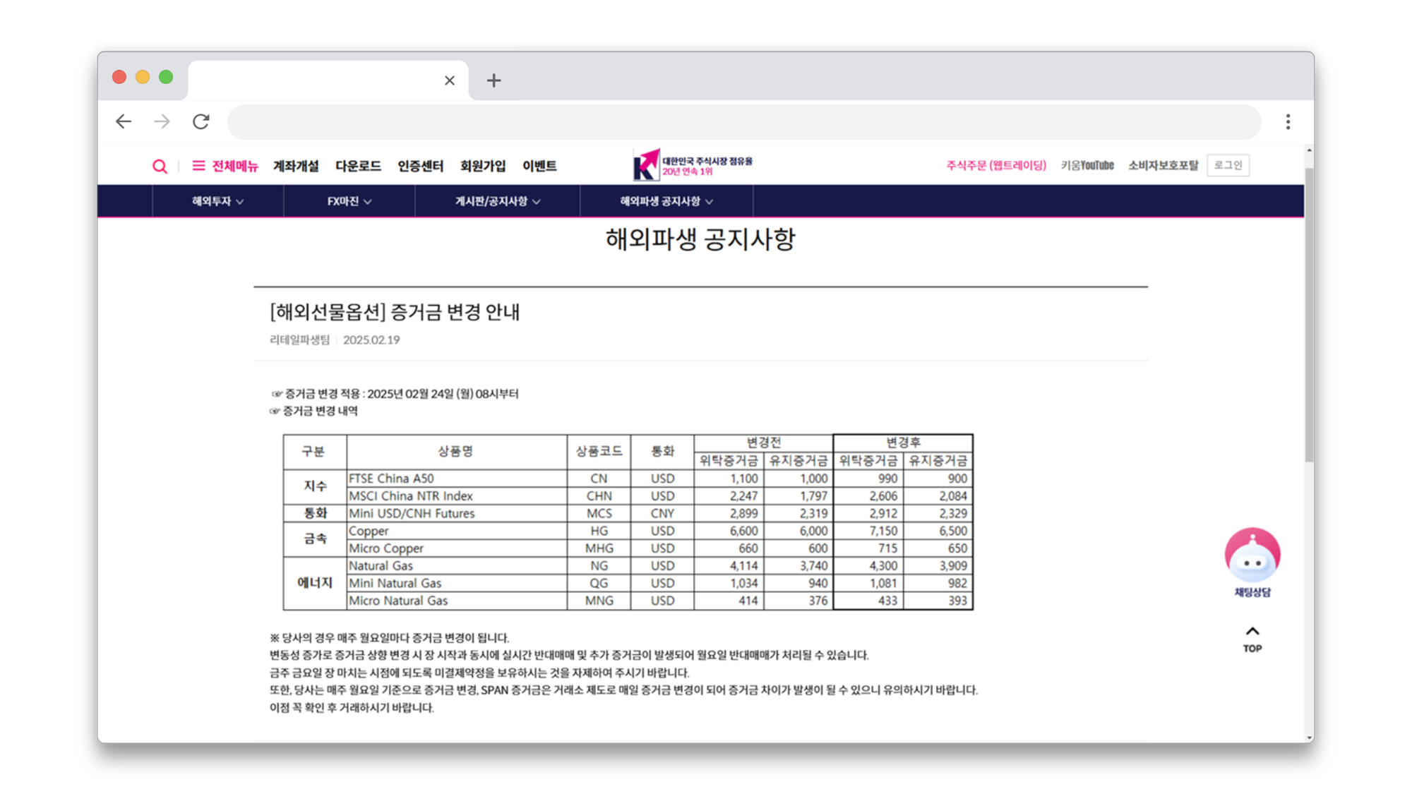 이번 포스팅에서는 키움증권에서 발표한 2025년 2월 24일(월)부터 적용되는 해외선물 증거금 변경 사항을 정리해 드릴게요.